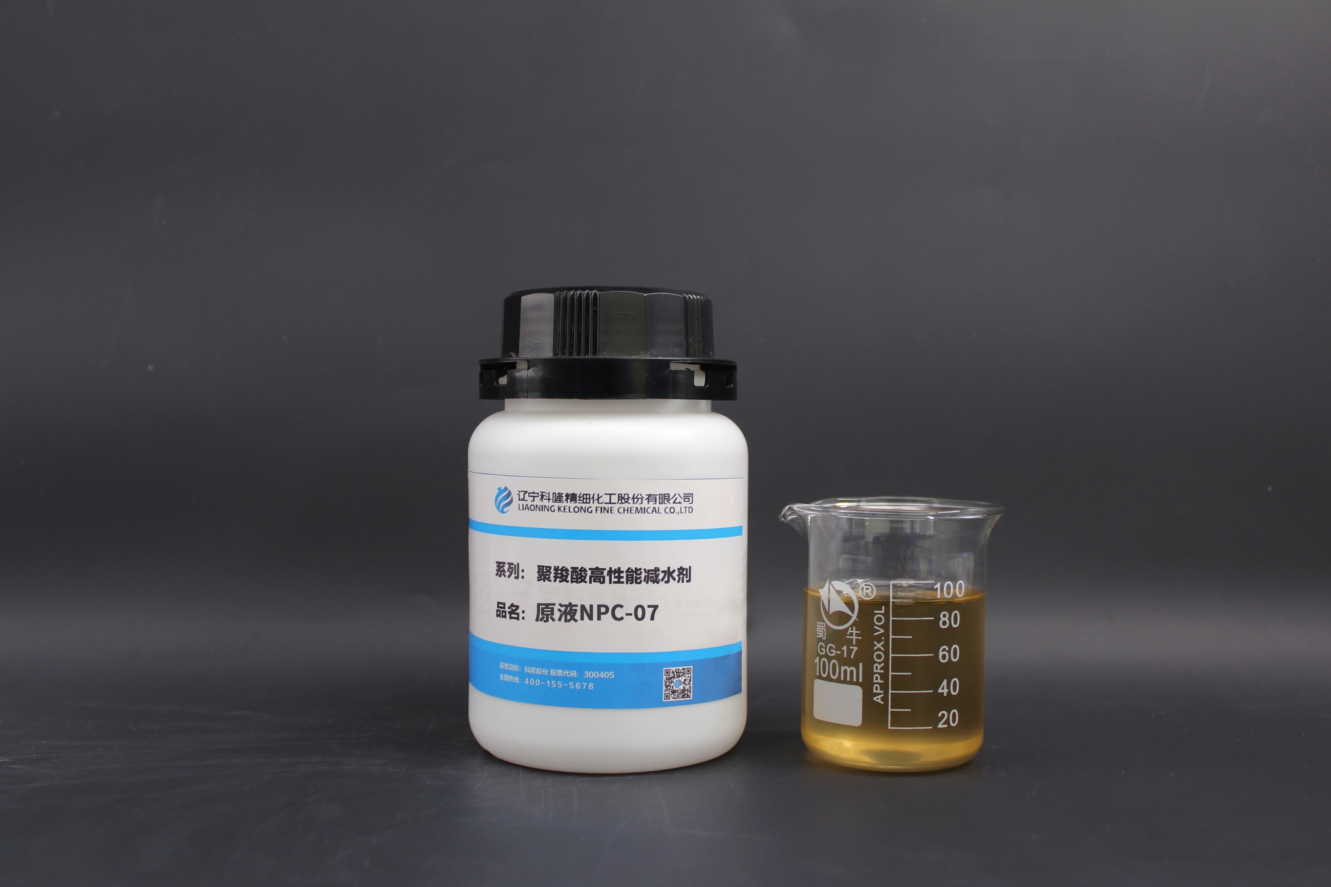 NPC-07 是我公司使用異戊烯醇聚氧乙烯醚及功能組分研發的保坍型聚羧酸鹽類高性能減水劑原液,相較于普通聚羧酸減水劑原液,該減水劑除具備較高的減水性能外, 兼具優異的坍落度保持能力和廣泛的適應性,同時可顯著改善混凝土和和易性。使用 NPC-07 原液生產復配液產品,可簡化、降低各種功能性外加劑輔料的使用量,降低生產成本,是一款綜合性能突出的減水劑產品。